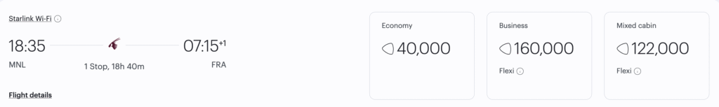 Note: taxes were not included in above table for redemption. But for reference, it could be as high as 30K PHP (Qatar), and as low as 4K PHP (Singapore)