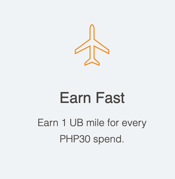 - Travel card, that earns fixed 1 frequent flyer (FF) mile every Php 50 spend, uncapped