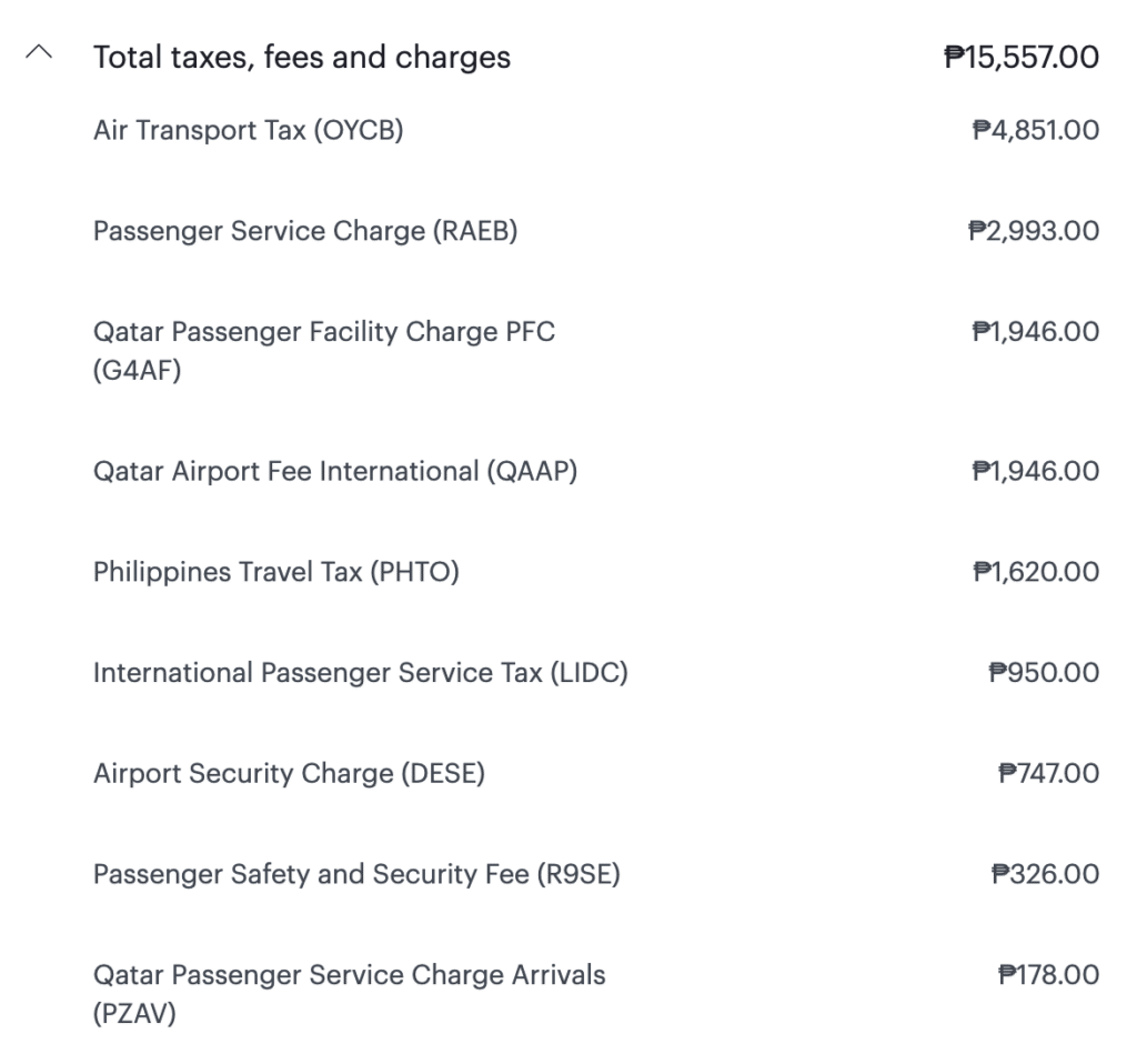 Only 66 USD (or 4K PHP)! I used the highest class (Business Access) to take the total taxes.
