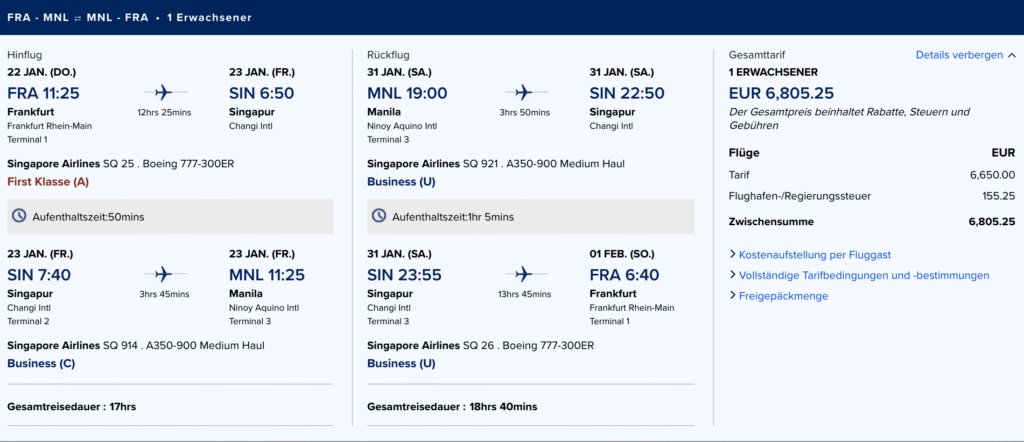 So 6.8K EUR (462K PHP as of the-day-I’m-writing-this exchange rate 67.95) for a mixed cabin booking, Suites and then Business on return.