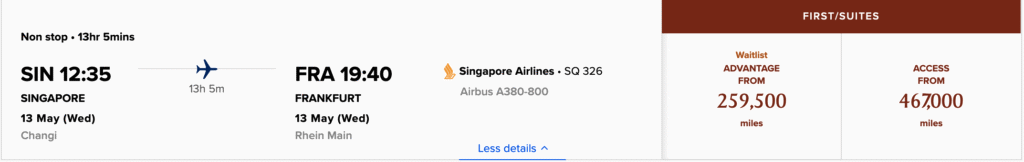 I have been researching on how to redeem such high-value flight. And from various sources, I need to be as flexible as I could be, since it is only a very limited redemption. I mean, it makes sense, it costs A LOT. And if you are waitlisted, odds are you will never get the slot – at least that’s what other’s experience is.